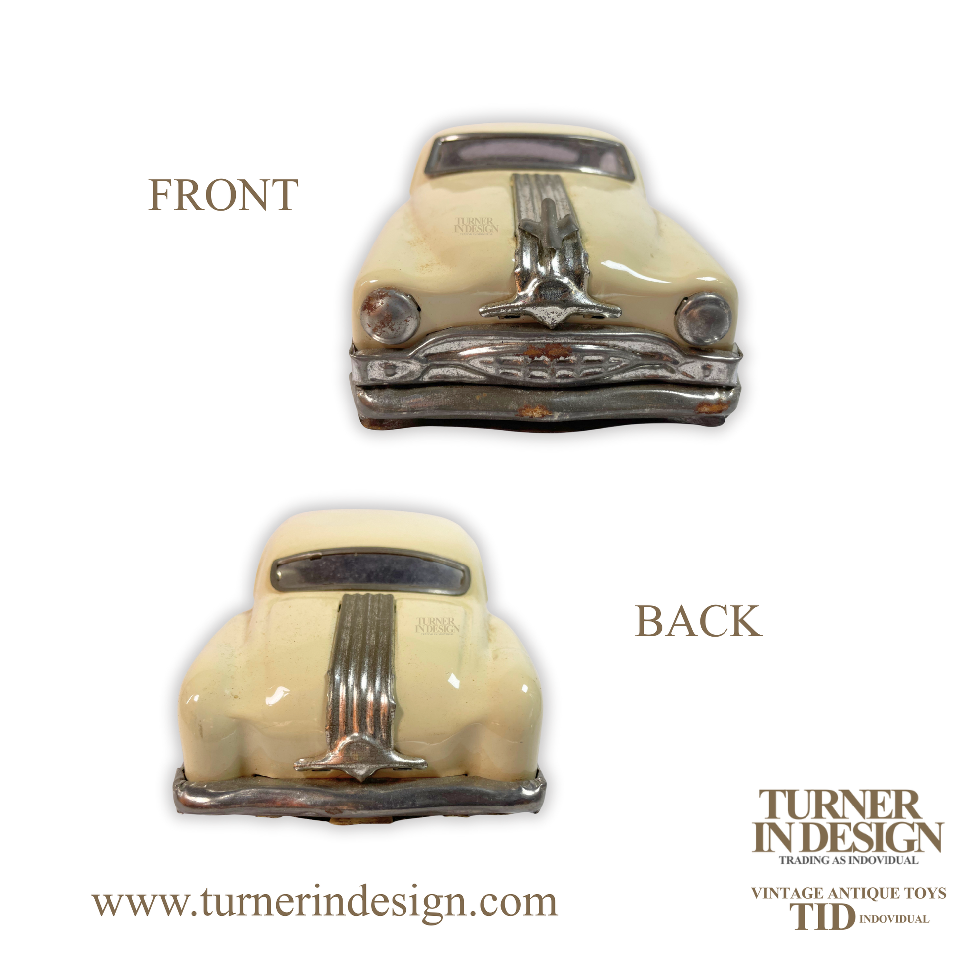 This classic, limited reproduction tin mechanical and automatic friction toy car is a model of the 1954 Pontiac. It features a nostalgic design inspired by mid- century automotive craftsmanship. Series Minister Deluxe by Amar Toy Co. (Circa 1970s- 1980s). Made in India.