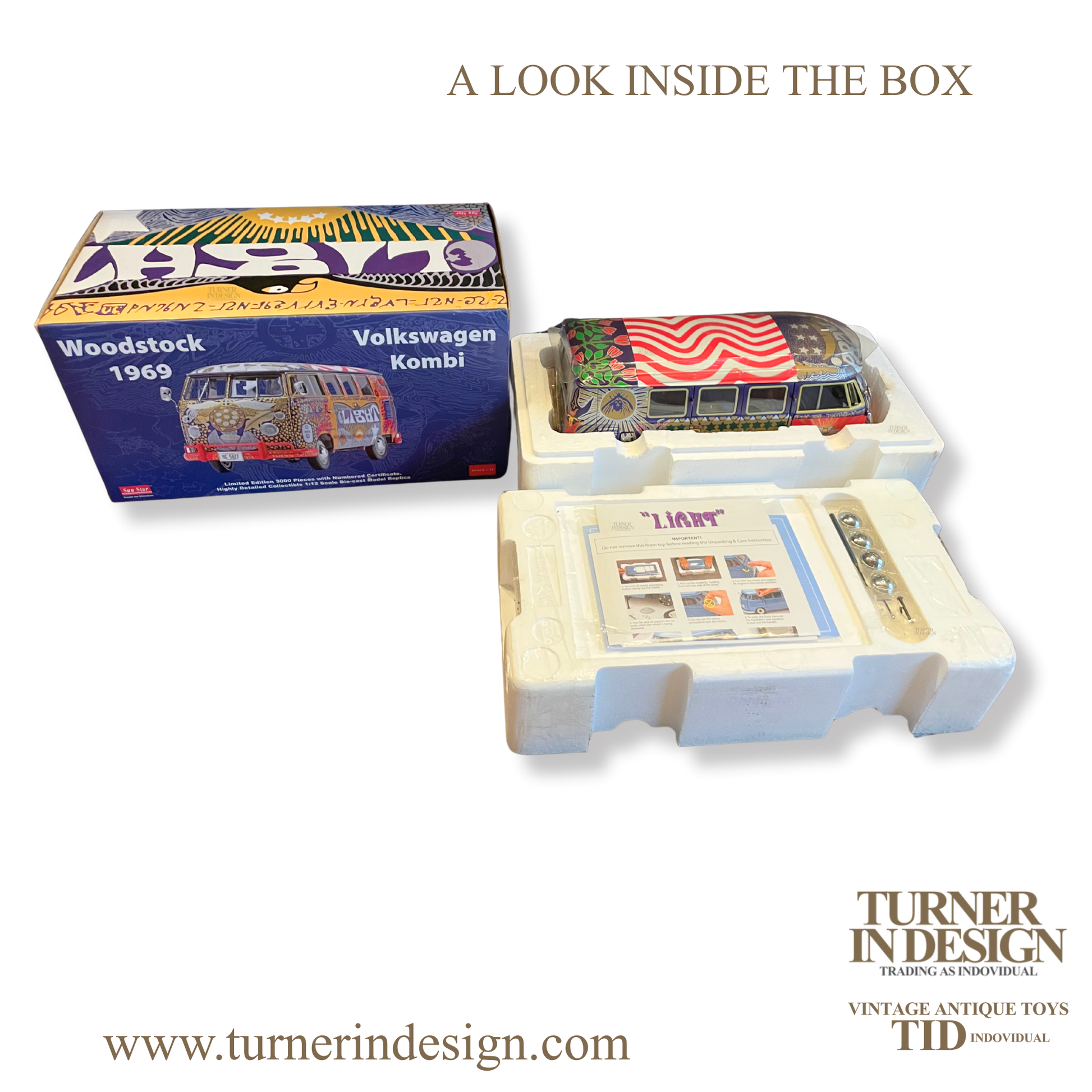 VINTAGE LIMITED EDITION (ONLY 3000 PIECES WORLDWIDE) | 1969 VW KOMBI WOODSTOCK LIGHT BUS DIE-CAST | SCALE 1:12 | OFFICIALLY LICENSED BY VOLKSWAGEN